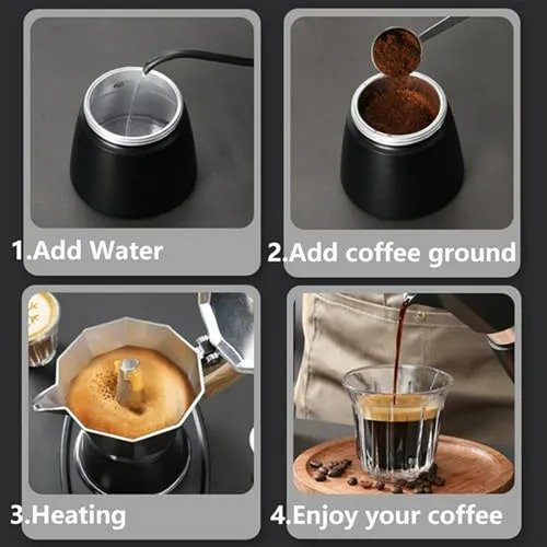 ,-Duradero y facil de limpiar: fabricado con aluminio de alta calidad de grado alimenticio, nuestra maceta Moka de 6 tazas no se oxida, no contiene incrustaciones y esta libre de escamas de metal que podrian danar tu salud. Enjuaga la cafetera de la estufa despues de su uso, airea completamente y secala.